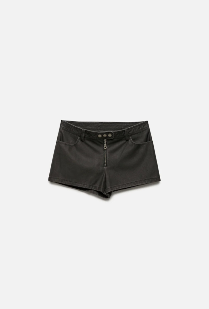 и дополнили коллекцию кожаными вещами: oversize плащом, мини-юбками с низкой посадкой, рейсерской курткой, корсетом, ботильонами на металлическом каблуке